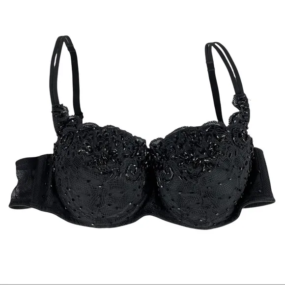 Vtg Y2K Victoria’s Secret Bra Sz 34A Black Floral Lace Embellished Beaded Cups Push Up Bra Mesh Bac... Show more