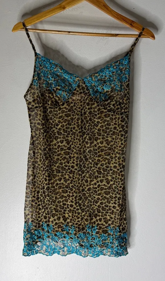 Vintage Y2K Victoria’s Secret Leopard Mesh Lace Trim Baby Doll Slip USA Small Brown - $30 - From Crystal