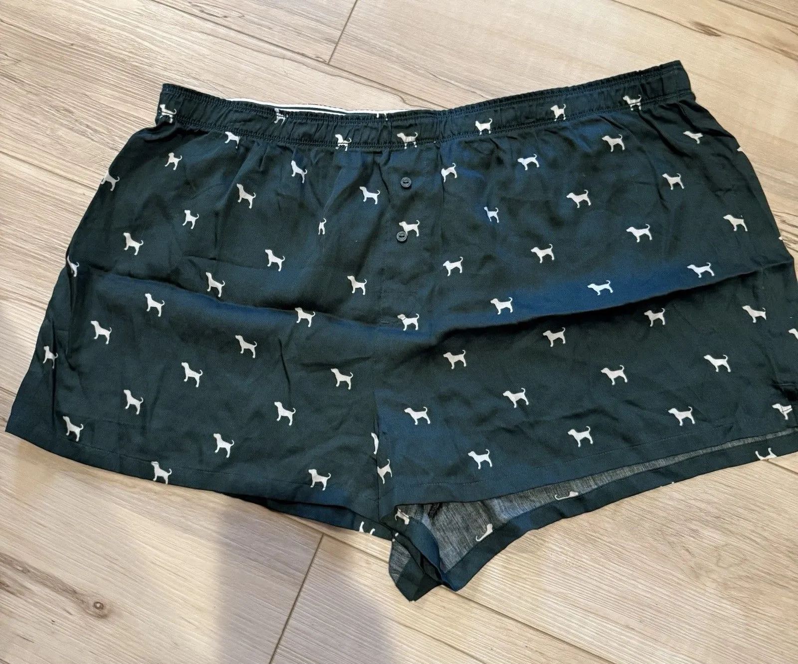 VS Victorias Secret Pink silky Sleep Boxy Short Shortie Pure GREEN Dogs XL - $16 - From Lace