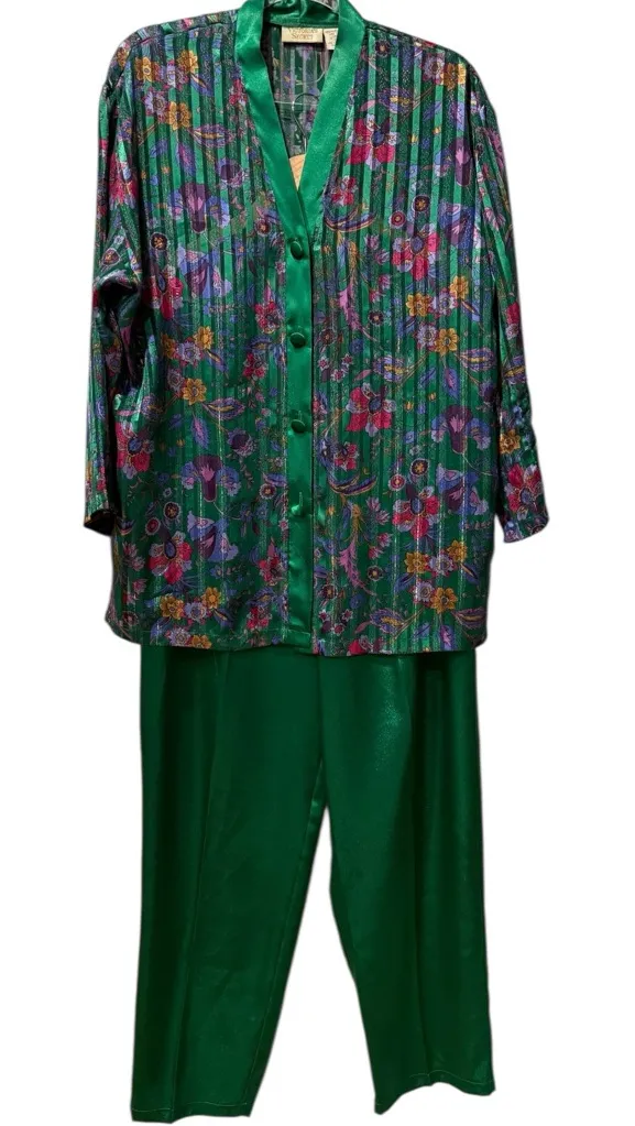 Stunning vintage late 80s / early 90s Victoria's Secret hostess lounge set in a rich emerald green w... Show more
