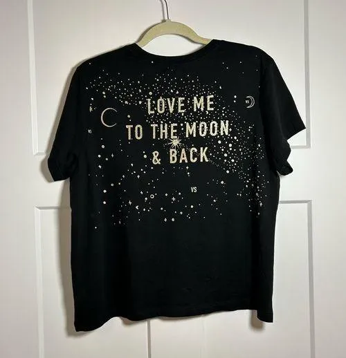 Women’s size XL Victoria’s Secret black t shirt, Love me to the moon and back gold glitter graphic.... Show more