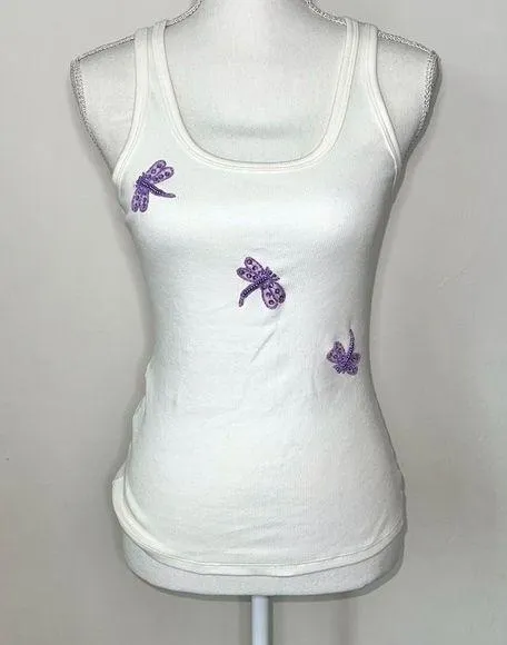 NWT Size small Ribbed Stretchy 2002 vintage Y2K Beading embellished dragonfly #dragonfly #beads #... Show more