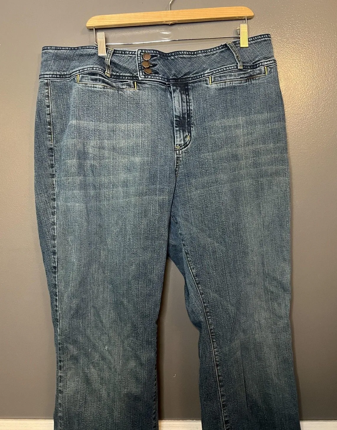 Gently worn with overall wash fading and light wear at hems. Fabric, seams, buttons, and zipper are... Show more