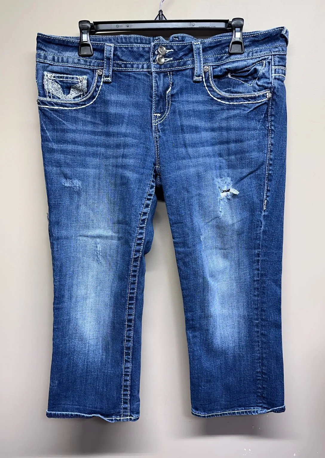 Vigoss The Chelsea capri jeans in a size 11/12. These blue denim jeans feature a distressed look wit... Show more