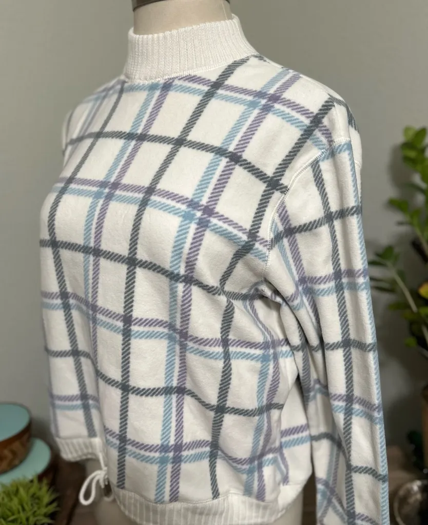 Villager Sport Vtg Cream/Blue/Gray Checkered Plaid Mock-neck Sweater Med White - $30 - From luck x