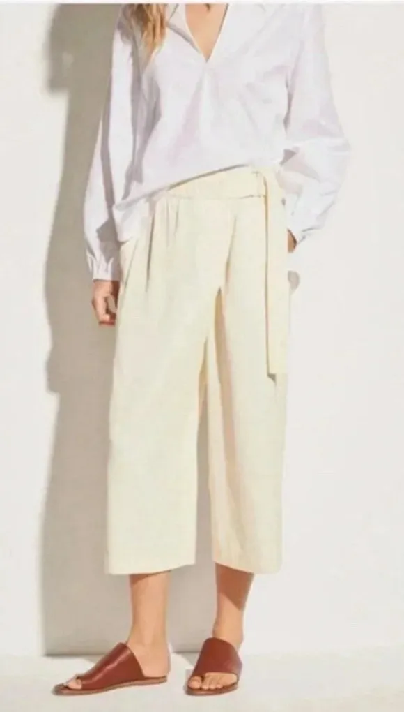 Vince 100% viscose Size XS Culotte Tie Waist Pants Ivory Wide Leg Crop Preppy Please see photos f... Show more