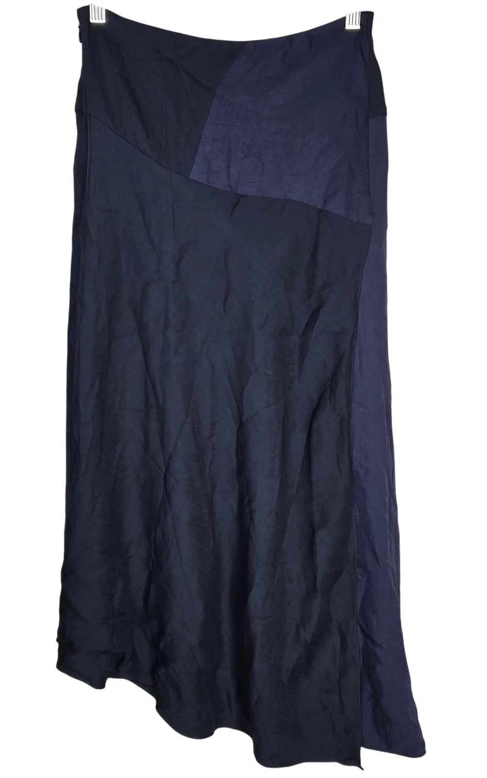 Vince Asymmetrical Paneled Draped Crinkled-Satin Midnight Navy Blue Midi Skirt Women's Size: Size... Show more