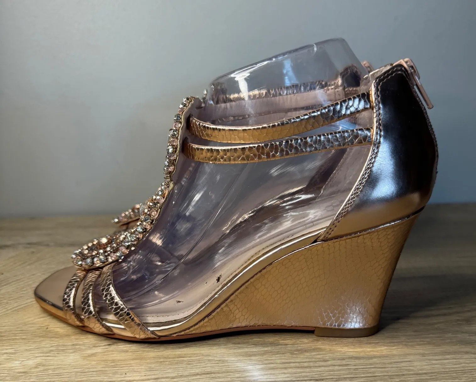 Metallic, Patent, Snake, Python, Embossed, Wedge, Sandals, Heels, Open Toe, Ankle Strap, Zipper, Crystal, Rhinestone, Diamante, Gem, Embellished, Bling, Sparkle, Glam, Glamour, Party, Cocktail, Wedding, Bridal, Prom, Date Night, Event, Occasion, Designer, Luxury, Statement, Formal