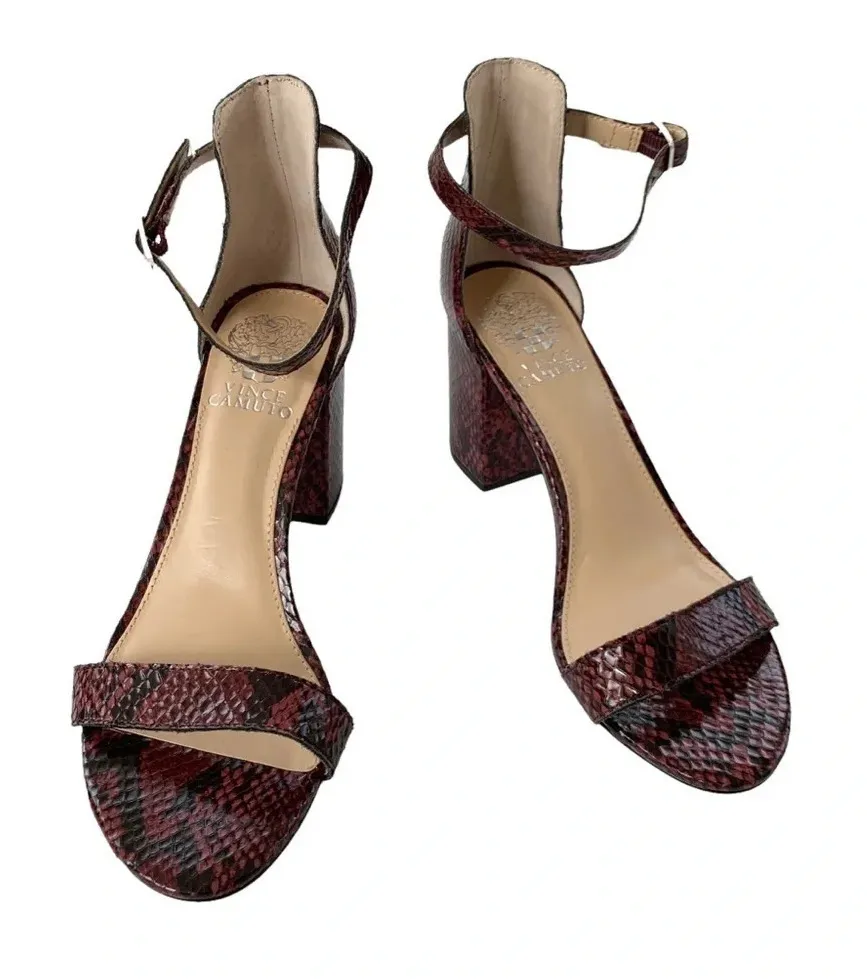 Vince Camuto Beah Snakeskin Burgundy Low Heel Sandals Size 10 New with tag No box A strappy sanda... Show more