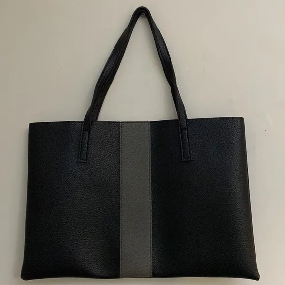 Vince Camuto black /gray vegan leather tote in great condition inside pocket measurements in picture... Show more