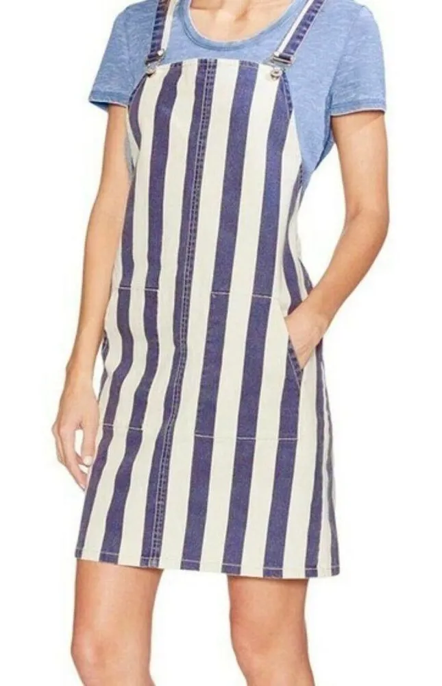 Great pre-owned condition, no stains or holes Vince Camuto XS Striped Indigo Blue and White Denim O... Show more