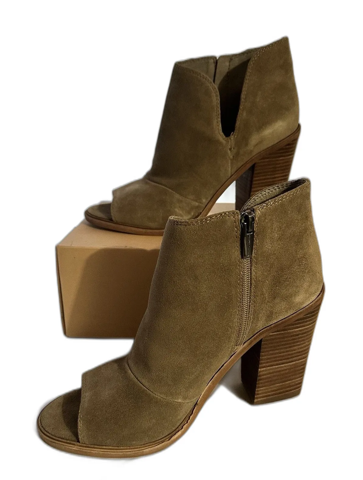 New Vince Camuto Boots Women's 9.5 Brown Katleen Suede Leather Peep Toe Ankle Bootie