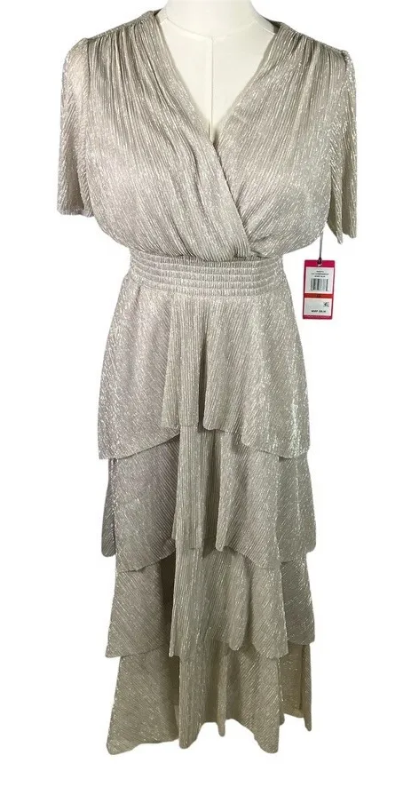 Vince Camuto Champagne Metallic Dress Tiered Maxi Smocked Waist XS Pit to pit:16in Length:49in Sty... Show more