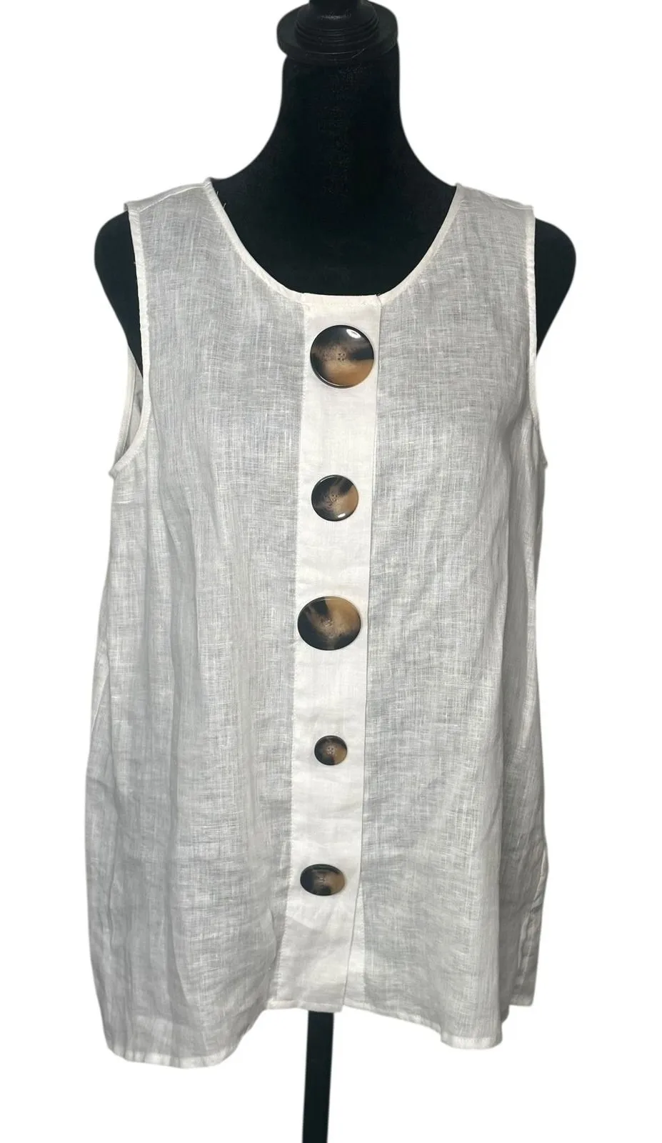 Vince Camuto Linen Sleeveless Top Women Size M White Minimalist Coastal Artsy Pre Owned, In Gre... Show more