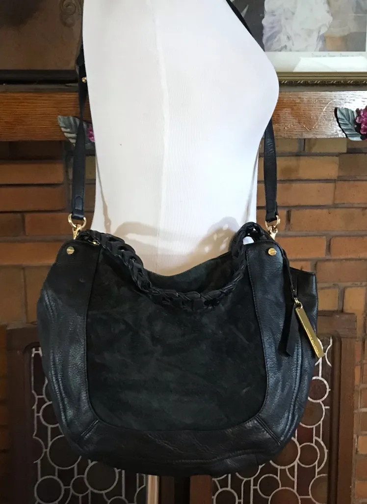 This listing is priced for the bag pictured. Vince Camuto -black leather and suede patch front -sty... Show more