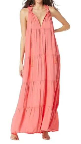 Long dresses, maxi, flowy. Sleeveless, tunic, swimming, swimsuit, vacation, cruise, summer, festival, women’s clothing, nordstrom, Bloomingdales, coral, v-neck, tank dress, tiered, spring, cover up , beach, pool, resort,