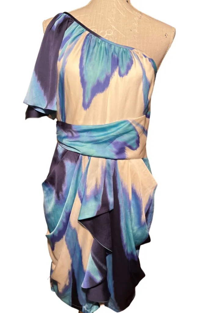 Vince Camuto one shoulder blue white dress watercolor size 8 Absolutely stunning! Side zip, hook an... Show more