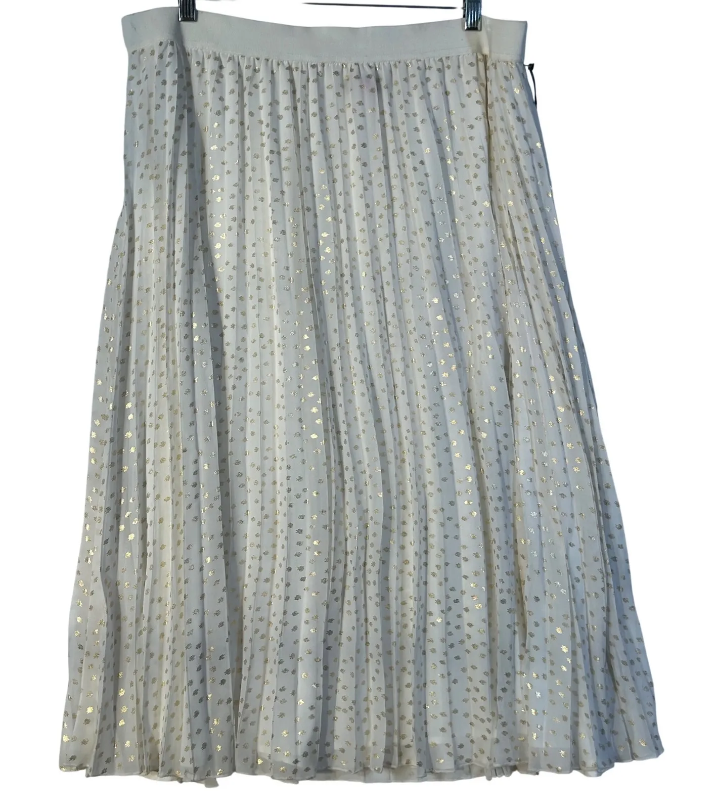 A flowing midi skirt from Vince Camuto, featuring a delicate all-over gold dot print on an ivory bac... Show more