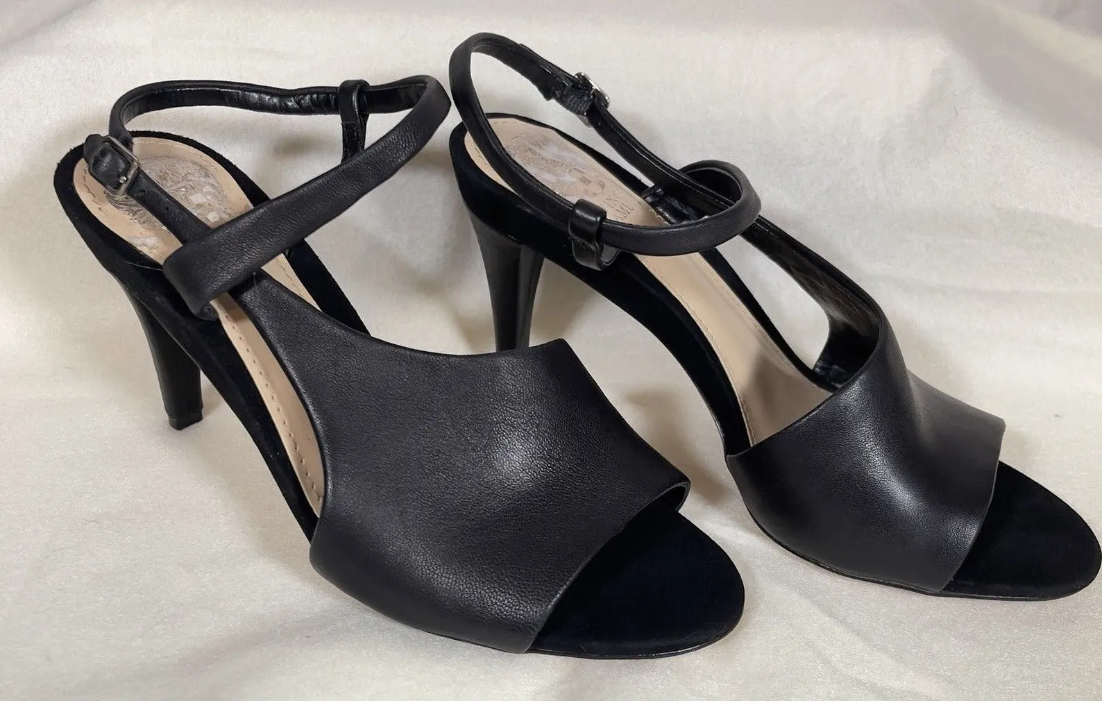**Never Worn. New without Box** Vince Comuto Black Leather sling back high Heel with Open Toe Size... Show more