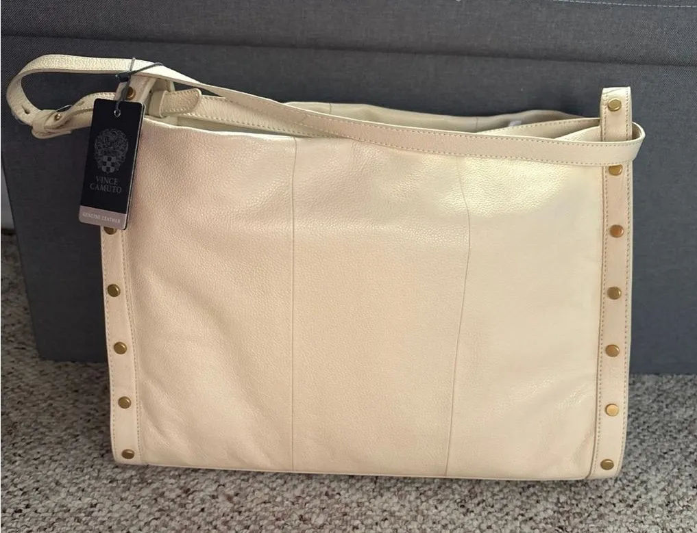 Elegant cream leather shoulder bag with gold accents. Perfect for any occasion. Brand new with tags... Show more