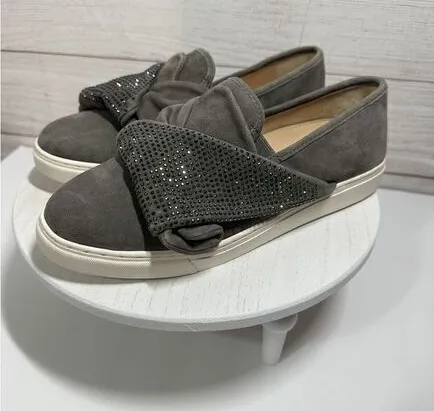 Step out in style with these Vince Camuto slip-on shoes. The gray suede upper is adorned with stunni... Show more