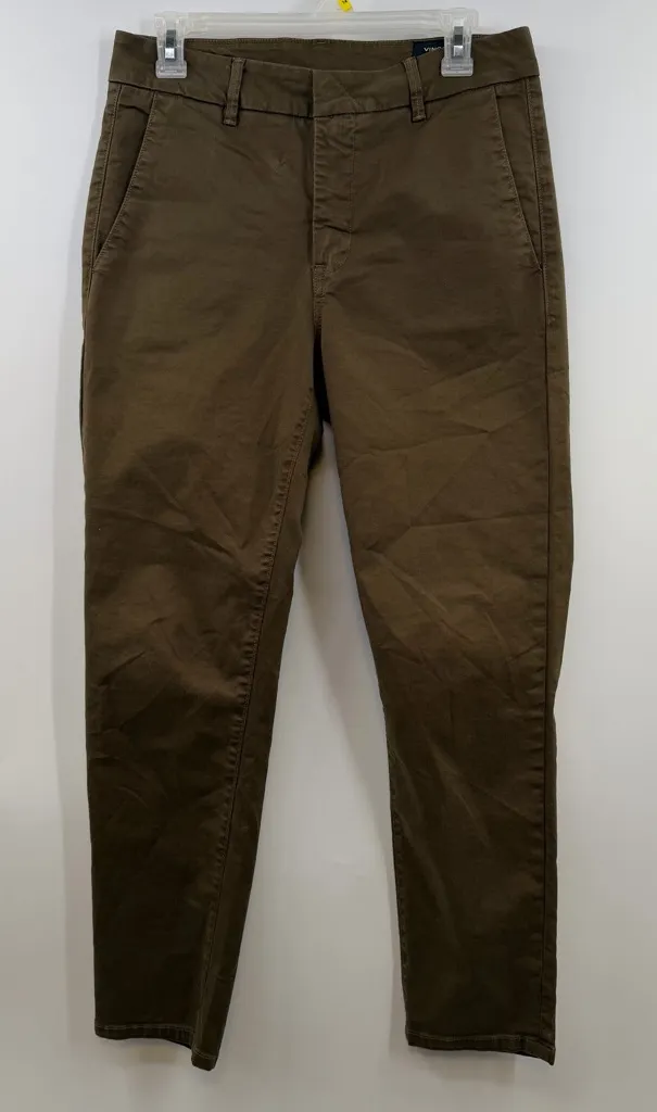 Vince chinos, Vince pants women, dark willow pants, olive brown chinos, minimalist pants, designer casual pants, stretch cotton chinos, modern workwear, elevated basics, capsule wardrobe pants, tailored casual pants, LA made designer pants