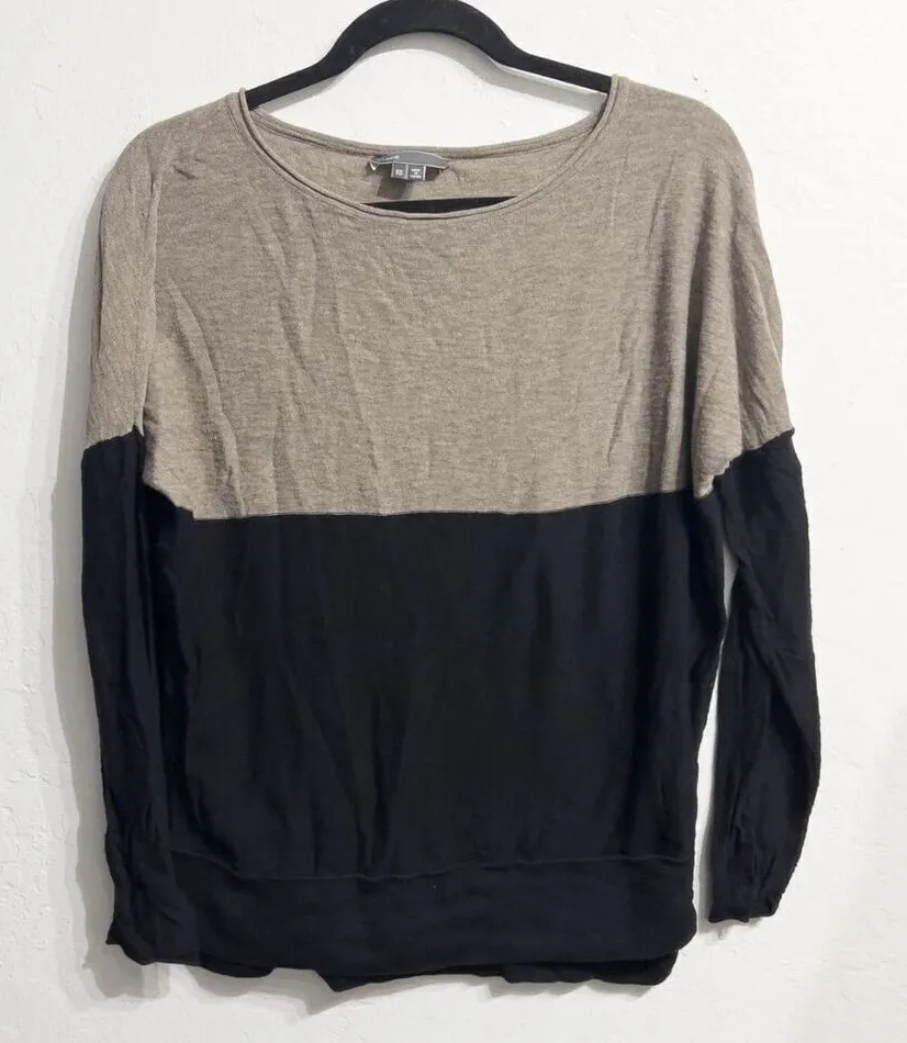 Vince Colorblock Lightweight Boatneck Cotton Knit Pullover XS Taupe Tan Black CONDITION: Preowned,... Show more