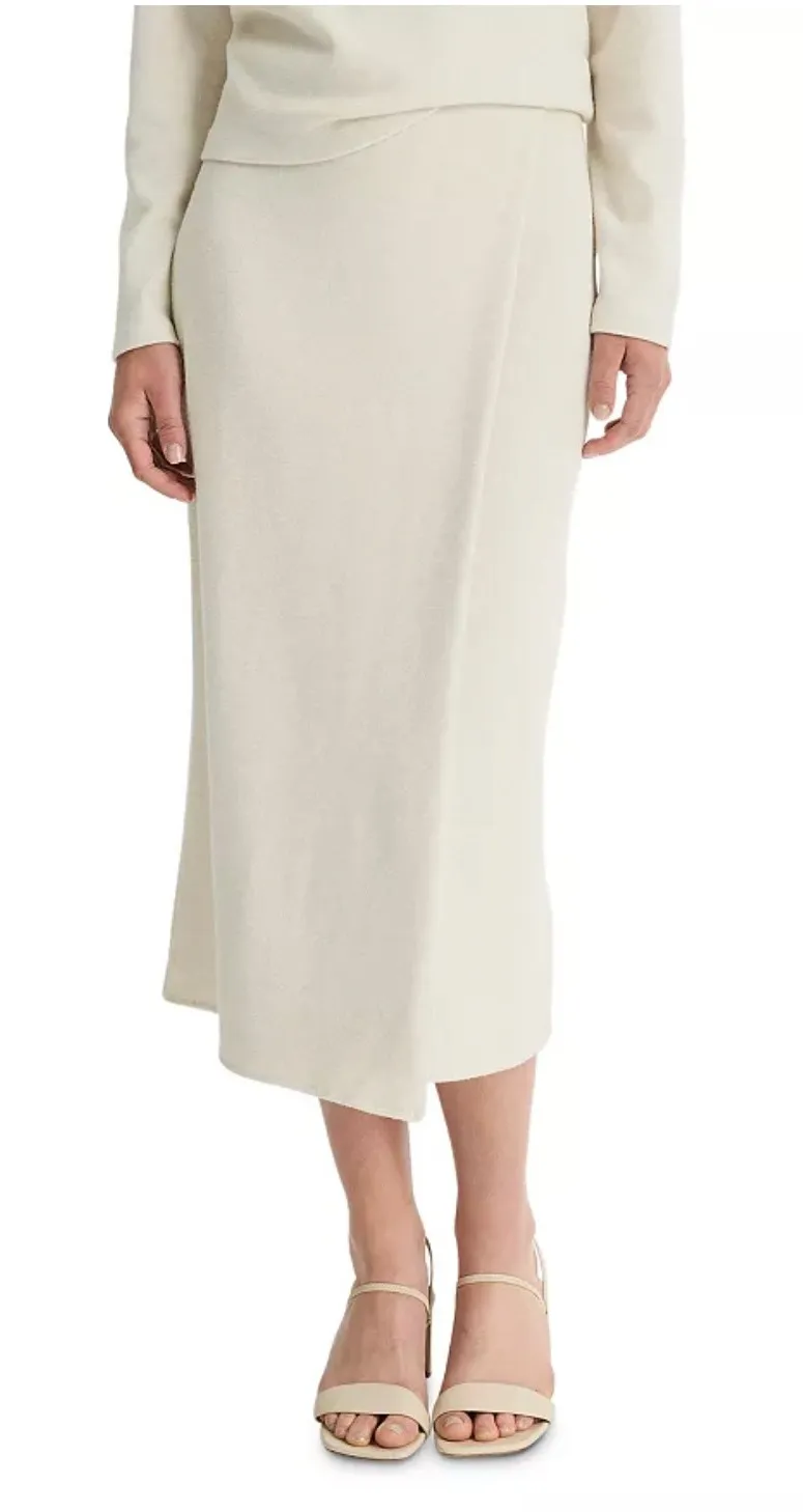 Women's size small. A cream knit midi skirt from Vince. This skirt features a flattering faux wrap s... Show more