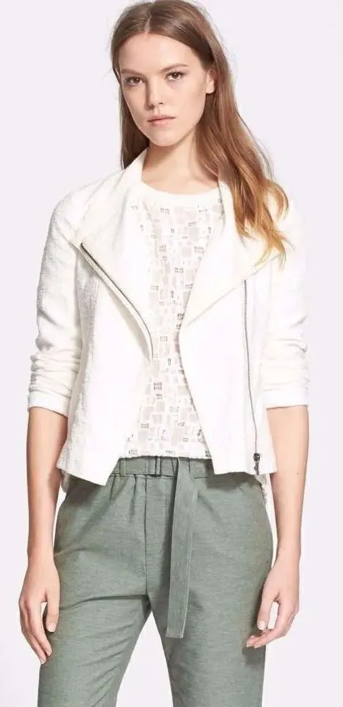 VINCE Stretch Texture Frise Asymmetric Jacket Cream size XXS textured and lightweight styled with... Show more