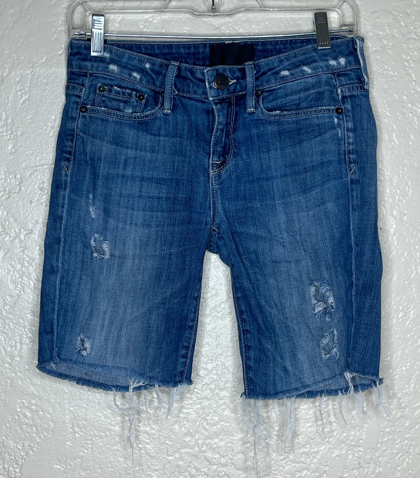 Vince women’s Dylan skinny Bermuda denim jean shorts in size 26 featuring a mid-rise fit and modern... Show more