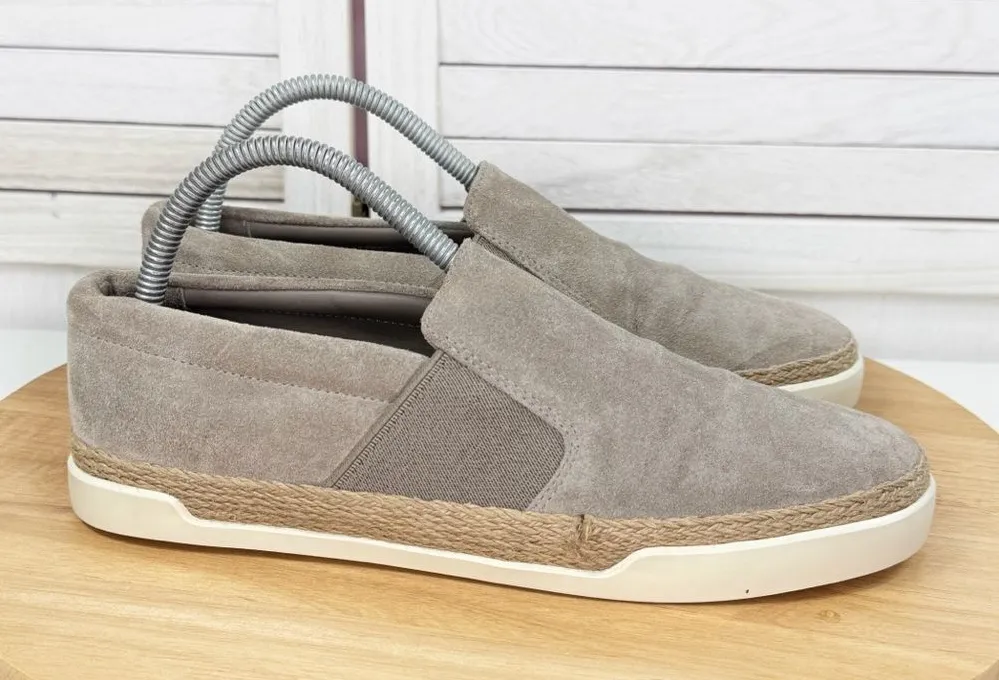 Vince Johan Suede Slip On Sneakers Taupe Tan Size 8 Taupe tan color Suede upper with braided Ju... Show more