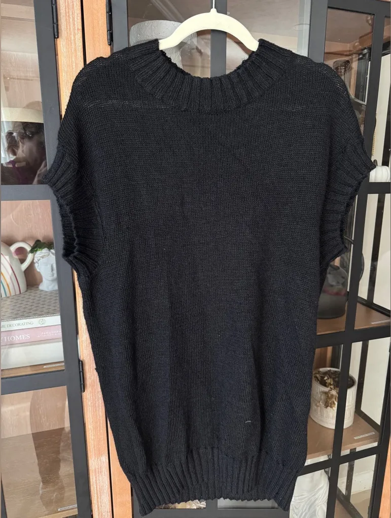 VINCE. linen sweater vest tunic ribbed open knit top short sleeve crew neck Black Size L - $35 - From Filo