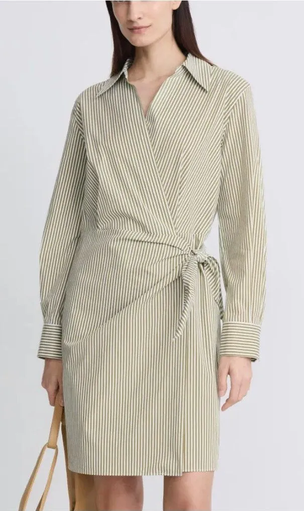 Vince Olive Striped Shirt Wrap Sheath Dress MEDIUM Work White Cotton Designer $400 Chic sheath dress... Show more