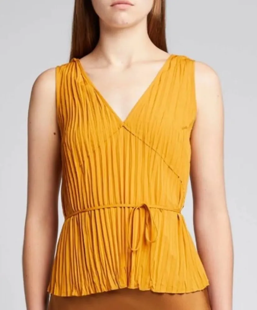 Vince Pleated V-Neck Sleeveless Blouse Size: XL Golden Yellow In great condition Amazing luxury bl... Show more