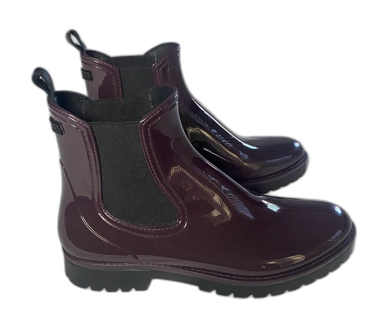 Brand: Vince Style: Risa Gum Chelsea Boot Glossy Burgundy Stacked heel , Round toe, Elastic gored... Show more