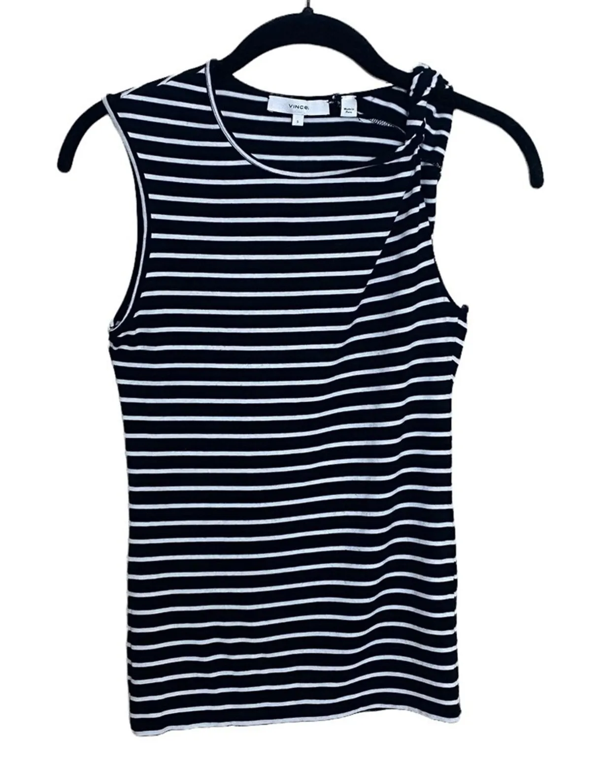 Vince Black & White Striped Cotton Twist Neck Tank size Small Striped cotton Sleeveless Twist neck d... Show more