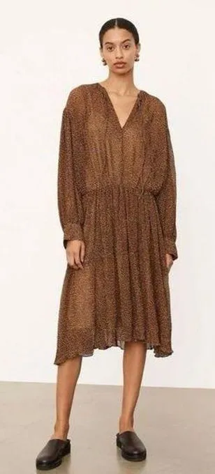 Tiny dots speckle an airy dress with a billowy tiered skirt and semisheer blouson sleeves. Split ne... Show more