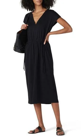 This black sheath midi dress is perfect for casual or work settings, featuring a classic v-neck. Its... Show more