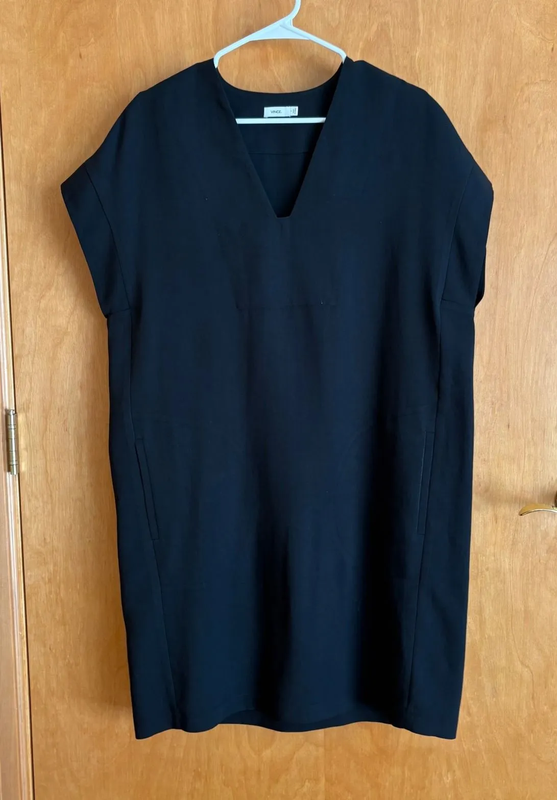 Embrace effortless chic with this Vince shift dress, a minimalist masterpiece rendered in classic bl... Show more