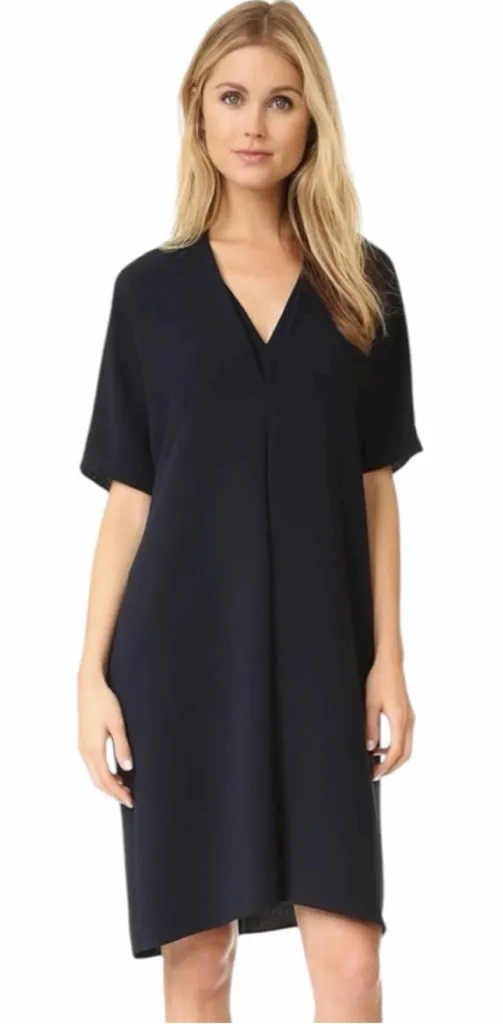 Vince Women's Crepe Elbow Sleeve Double V-Neck Dress in Navy Size Medium Fabric type 100% Polyeste... Show more