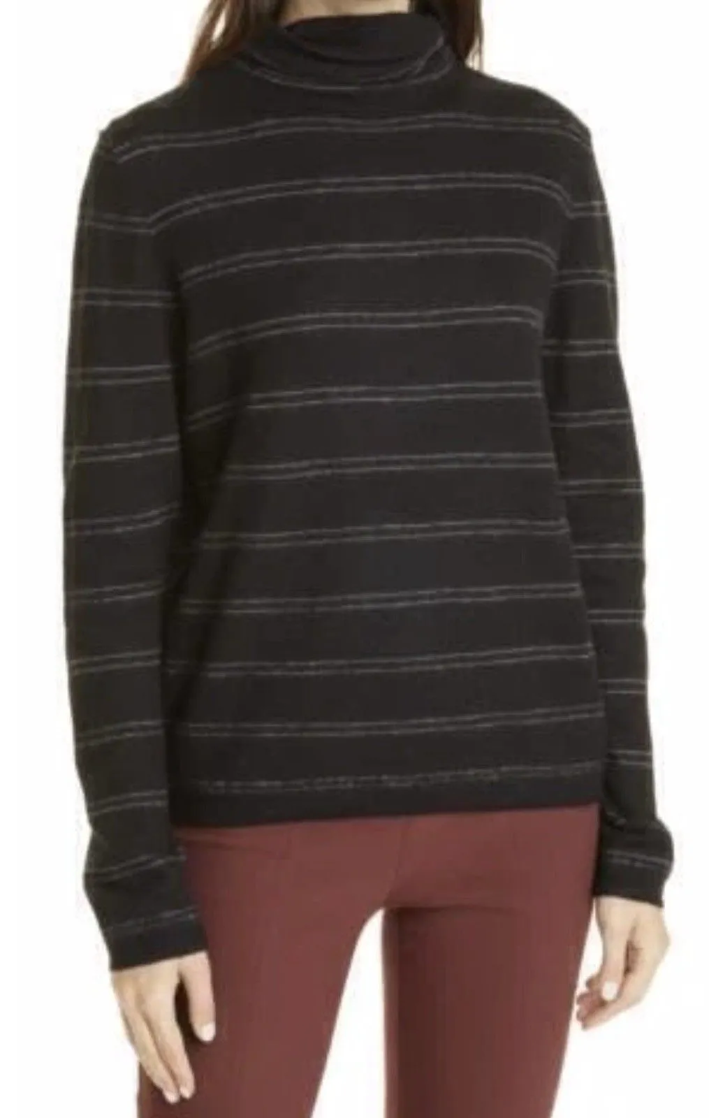 Vince Womens Sweater Black Turtleneck Stripes 100% Cashmere Medium Very GUC Very good used conditio... Show more