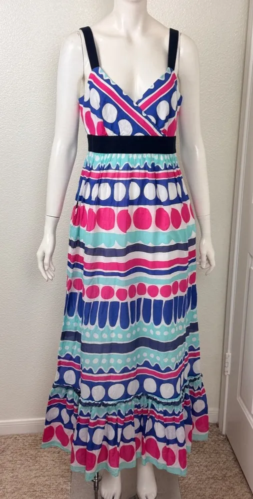 Vineyard Vines maxi dress with bold pink and blue patterns with side pockets. Ideal for casual outin... Show more