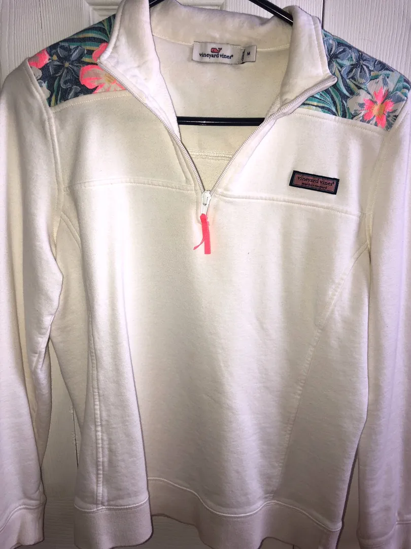 Very cute tropical print half-zip, perfect for vacation!! like new, worn once. Fits small/medium.