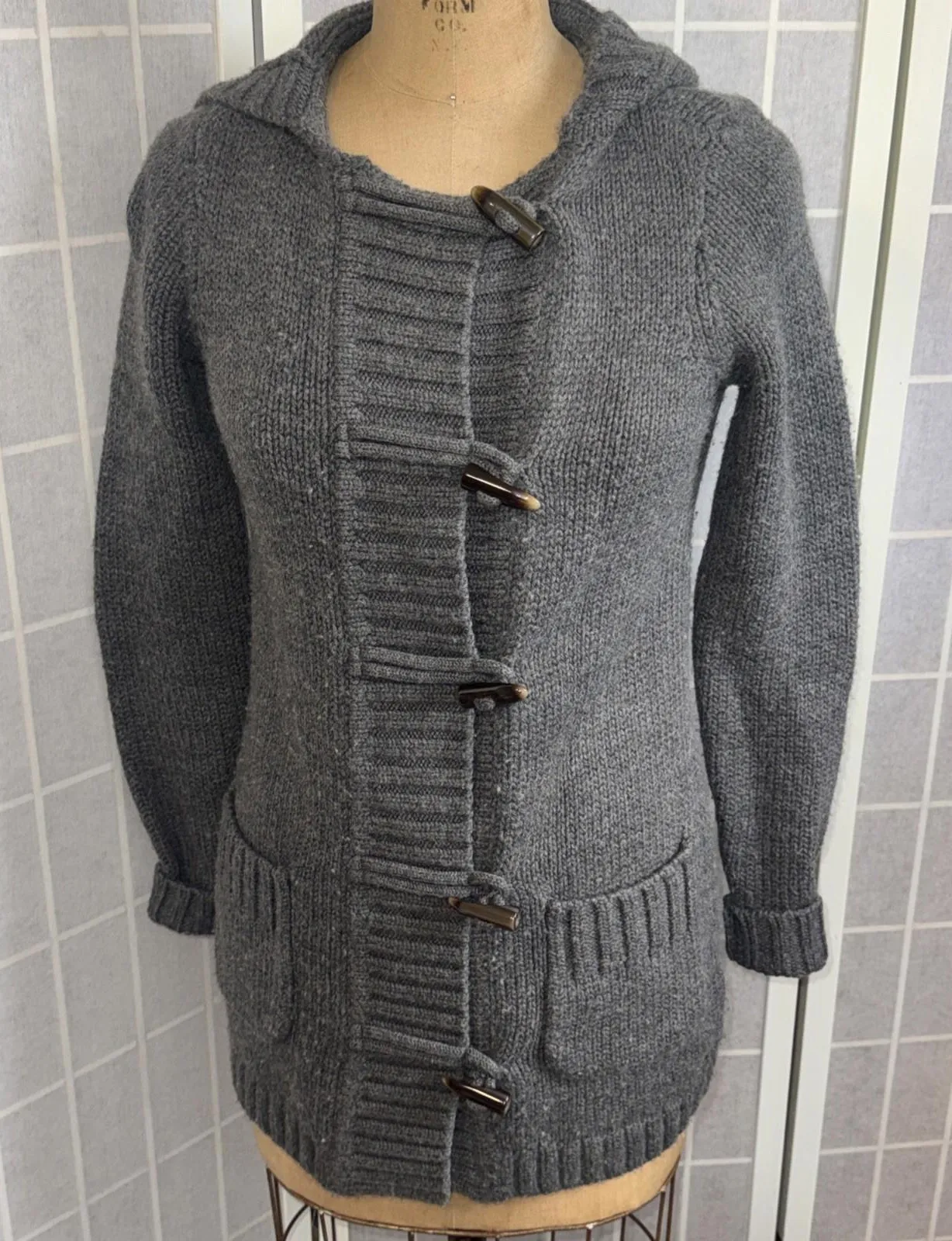 Vineyard Vines Minimalist Gray Hooded Button Up Wool Knitted Cardigan in USA Women’s Size XS, in goo... Show more