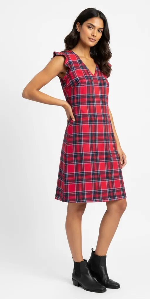 Stylish plaid dress featuring vibrant red and blue colors. Perfect for any occasion Bold tartan in... Show more