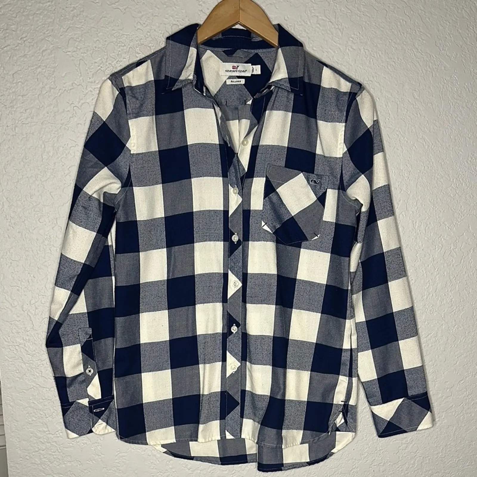 Vineyard Vines Navy Blue Check Women’s Button Up Shirt Size 4 relaxed Like brand new! Excellent c... Show more