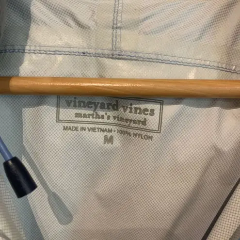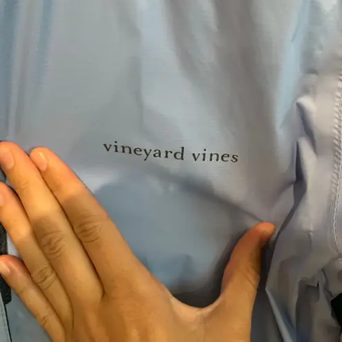 Periwinkle vineyard vines rain coat. Zip up jacket with Velcro closure. Adjustable hood. Zip pockets
