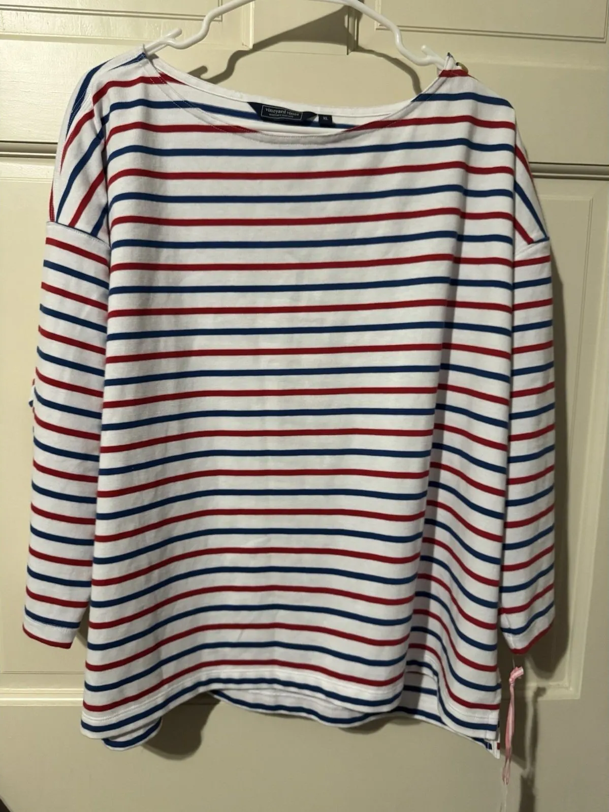 The Vineyard Vines Red White Blue Jamestown Striped Boat Neck Top is a stylish and vibrant blouse ma... Show more