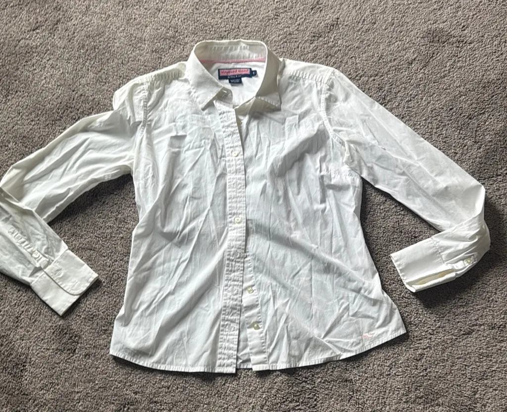 Classic white button-up shirt with long sleeves. Gently used (39)