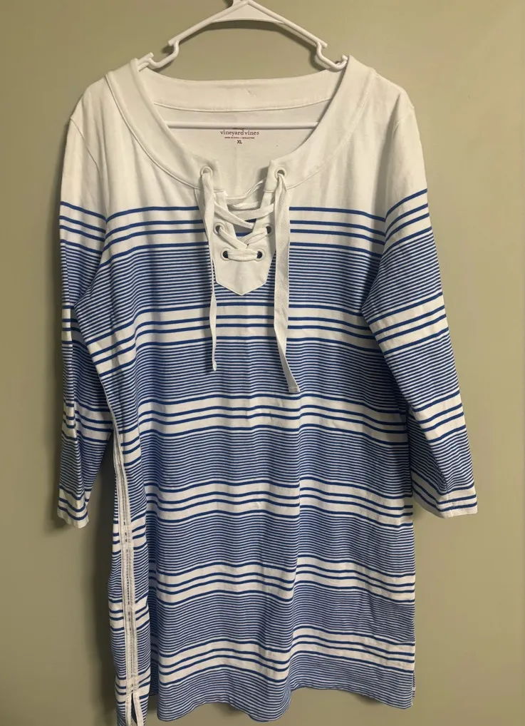 Vineyard Vines Yacht White Blue Striped Lace Up Cotton Dress Size XL 16-18 - $29 - From Ashlee